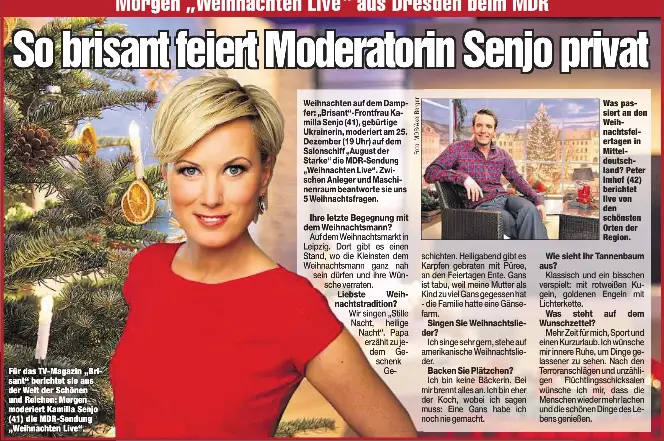 . Kamilla Senjo Träume und Tragödien menschliche und tierische Schicksale liefern den Stoff für Brisant das tägliche Boulevard-Magazin der ARD. Ihr Vater ist Ungar ihre Mutter halb Ukrainerin halb Deutsche. MDR um 4 ist das Nachmittagsmagazin des MDR. Kamilla Senjo 01111974.